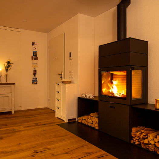 Als der Traum vom Eigenheim zur Realität wurde und das Ehepaar Huser bei der Planung ihre Wünsche einbringen konnte, war für Roman Huser sofort klar, dass er die Wohnung mit einem Kaminofen ausstatten möchte. «Meine Frau war anfangs skeptisch. Jetzt freut sie sich aber auch jedes Mal, wenn ich den Ofen anfeuere», schmunzelt Roman Huser.