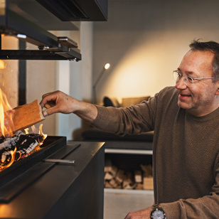 «Der Architekt, Claudio Holdener und ich hatten einen Holz-Kaminofen an einer seitlichen Mauer im Wohnzimmer im Kopf und bei unserem Besuch im Showroom in Cham waren dann auch diese Öfen das Hauptthema», erzählt Guido Heinrich, «bis uns Erwin Hauenstein, Firmengründer Attika, den Vorschlag machte, doch auch einmal den Kamin VISIO 3 L anzuschauen.»