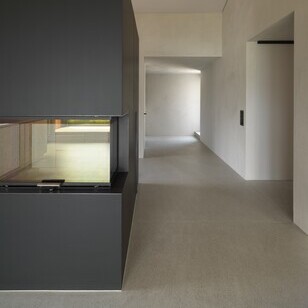 Der Kamin wurde statt in einer seitlichen Nische wie bis anhin auf einem erhöhten Sockel ins Zentrum des Wohnraums gestellt. Dadurch wird er zum Blickfang und verleiht dem Raum einen unverwechselbaren Charakter.